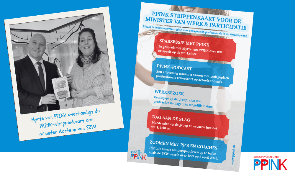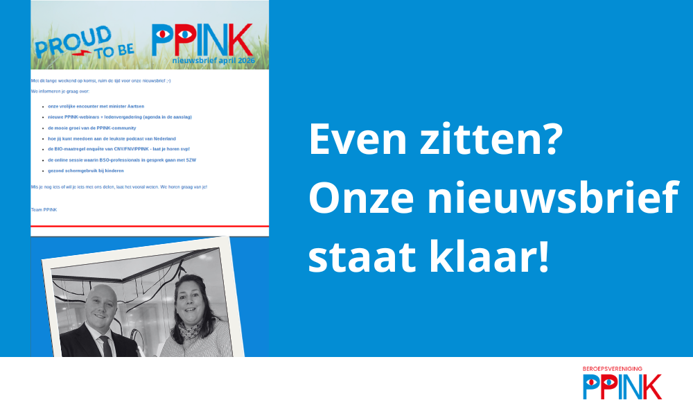 Het grootste pluspunt van PPINK vind ik de stem die ze mij als pedagogisch professional geven! Er wordt door PPINK aandacht gegenereerd voor mijn vak. Ze geven mij de mogelijkheid mijn kennis te vergroten en verdiepen. Door o.a. webinars aan te bieden. Met PPINK Insite kan ik mijn kennis delen of vragen stellen aan collega’s door heel het land. Ook brengen ze mij op de hoogte van bijvoorbeeld onderzoeken waar input van een pedagogisch professional wordt gevraagd, waar ik anders geen weet van zou hebben. Kortom zichtbaarheid voor mijn vak en daarmee een directe lijn naar buiten waar ik in kan deelnemen en mijn mening kan geven.