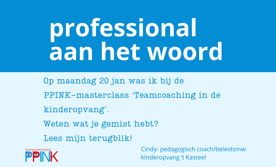 Pedagogisch coach/beleidsmedewerker Cindy, werkzaam bij Kinderopvang ’t Kasteel volgde 20 jan 2025 de PPINK-masterclass Teamcoaching in…